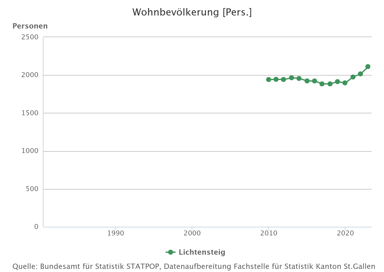 - Wohnbevölkerung (Jahr 2023): 2‘112 Personen (Vergleich Jahr 2020: 1‘897 Personen)